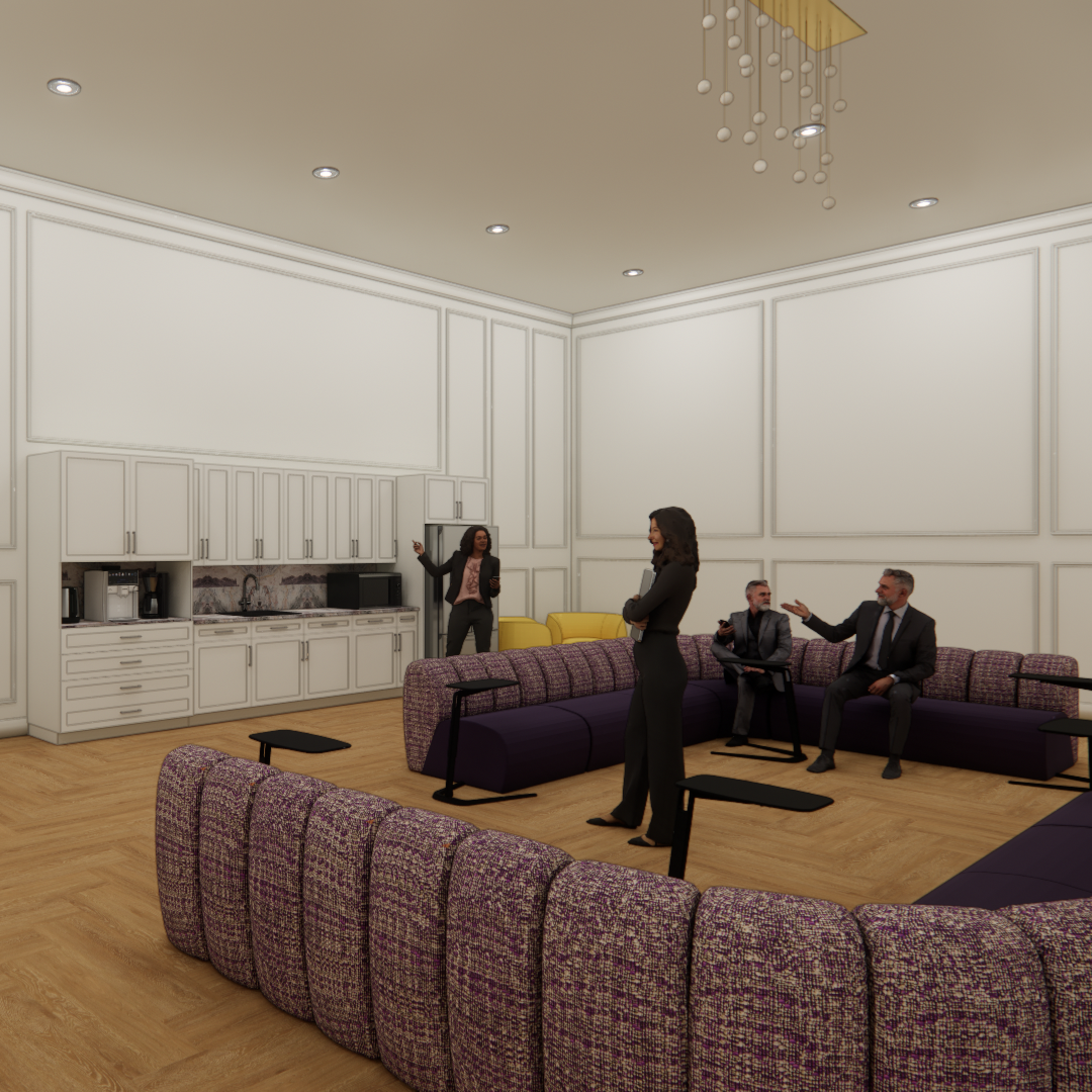 Violet X Events is expanding to offer full-service event hosting, catering, and photo shoot capabilities. They've chosen a new location (15,000 sqft) to transform into a multifunctional, timeless space that can adapt to a wide range of events and client needs. Our firm's primary focus for this project was on integrating human-centric lighting (HCL) into the design. HCL is the transformative approach to lighting design that integrates biological, emotional, and visual needs to create healthier and more productive environments by aligning artificial lighting with natural circadian rhythms and natural lighting.
